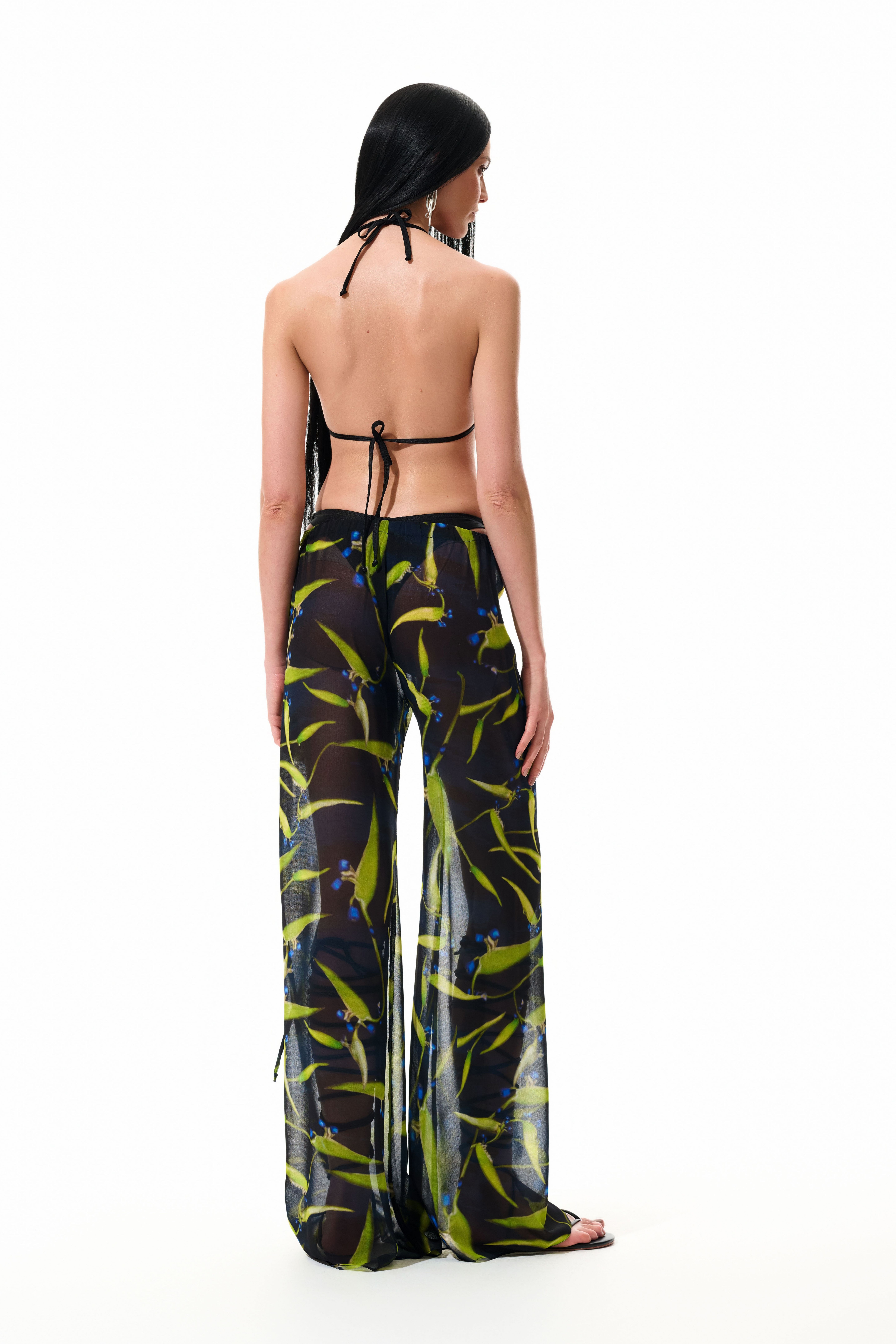 Calça reta em musseline com estampa digital exclusiva. Cós elástico e amarração frontal que ajustam a peça no corpo.  Modelagem cortada em viés, que proporciona caimento único e perfeito modelando a silhueta. Caimento fluído e levemente evasê.