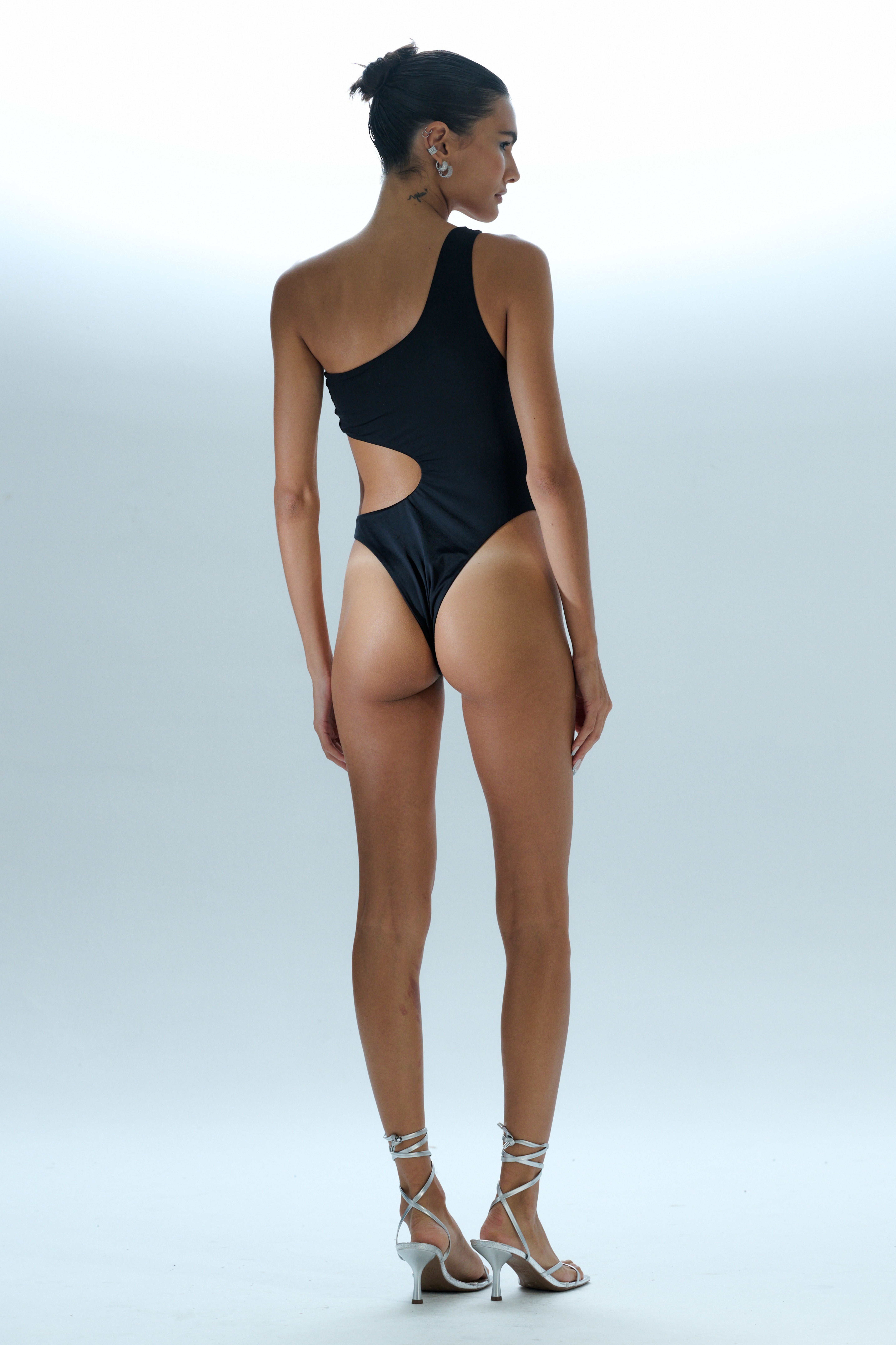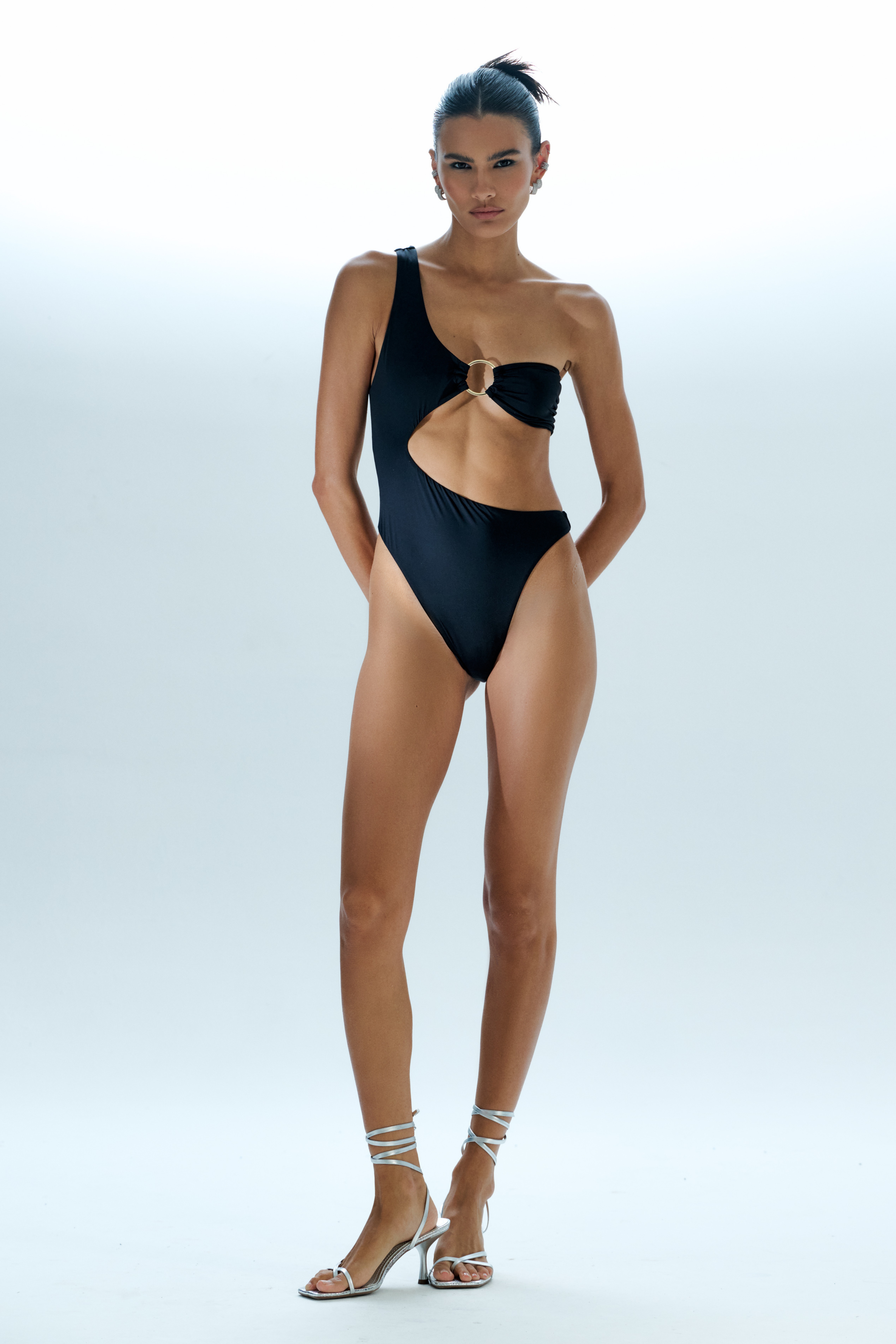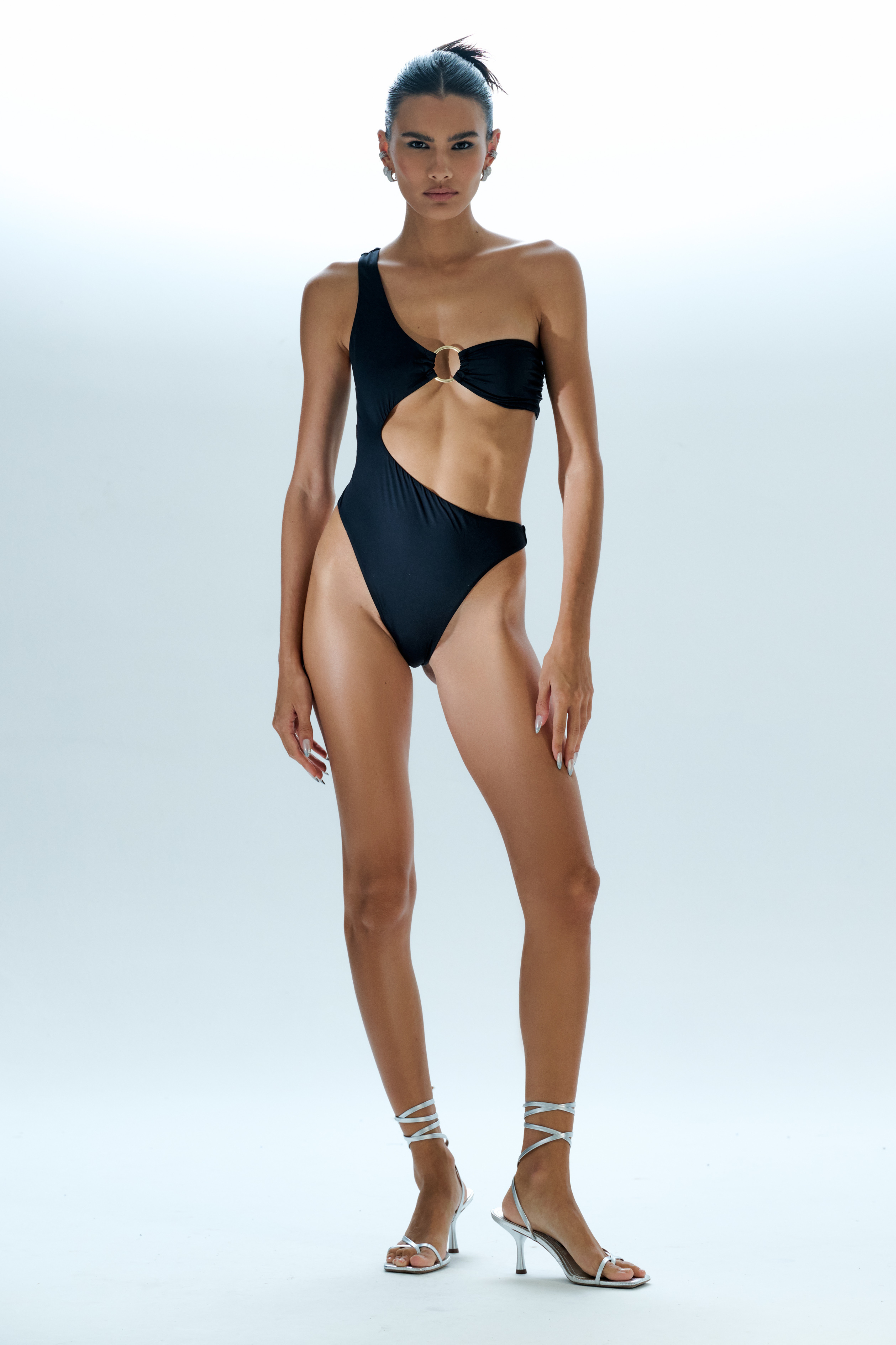 Maiô cavado de malha fluity UV com recorte na região da barriga, todo duplo, com argola de metal.