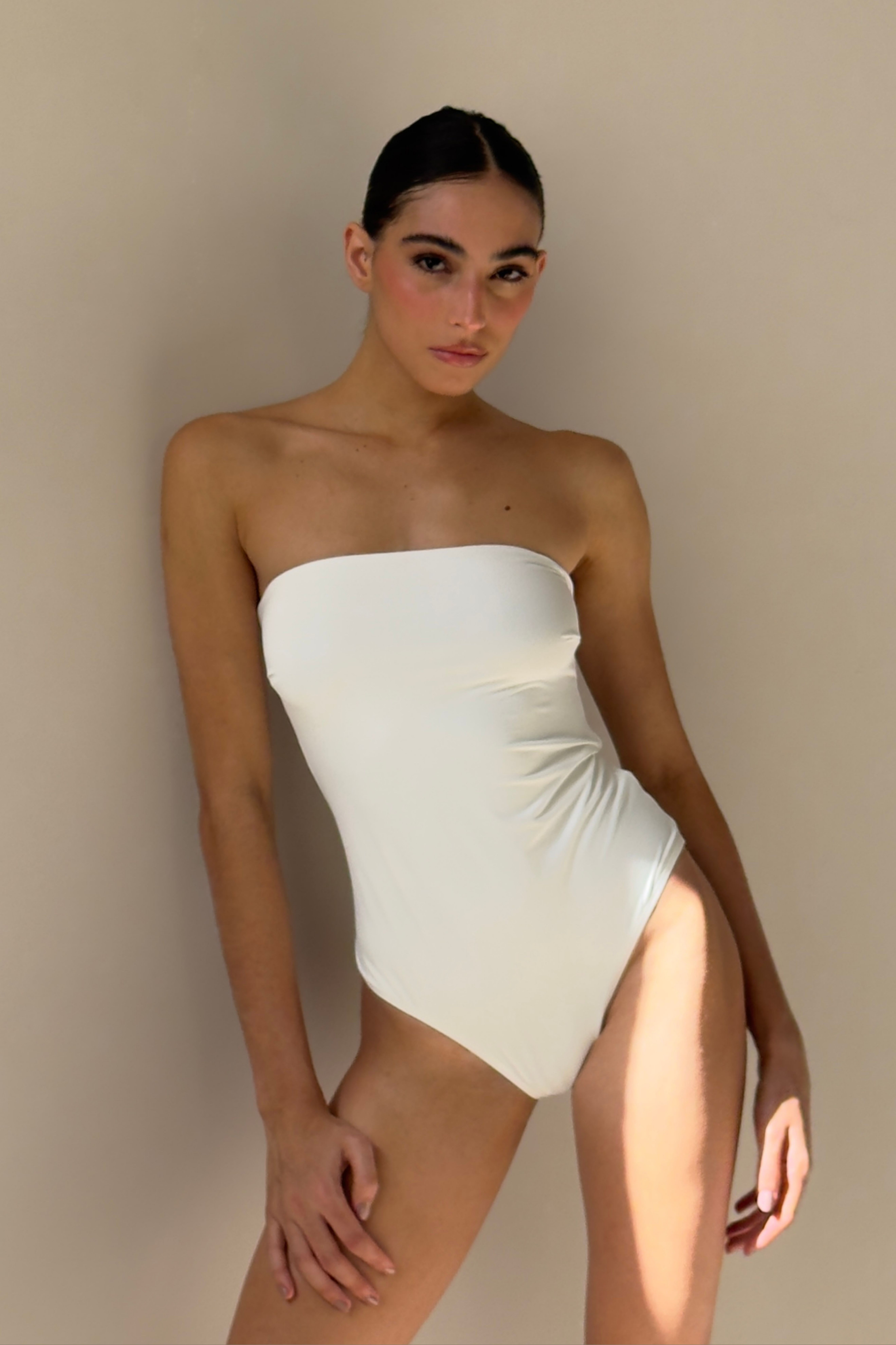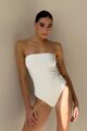 Maiô tomara que caia cavado de malha fluity UV, todo duplo.