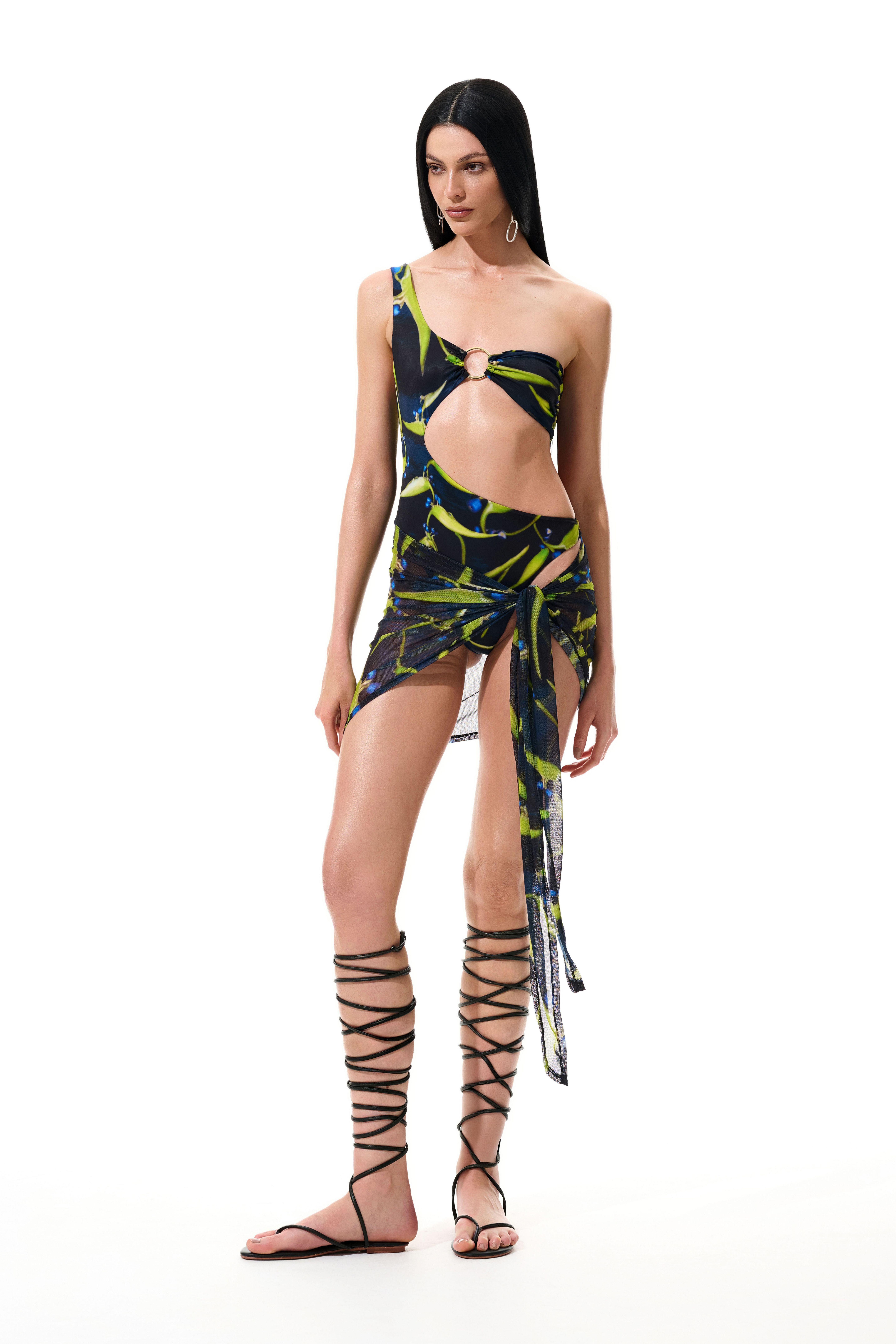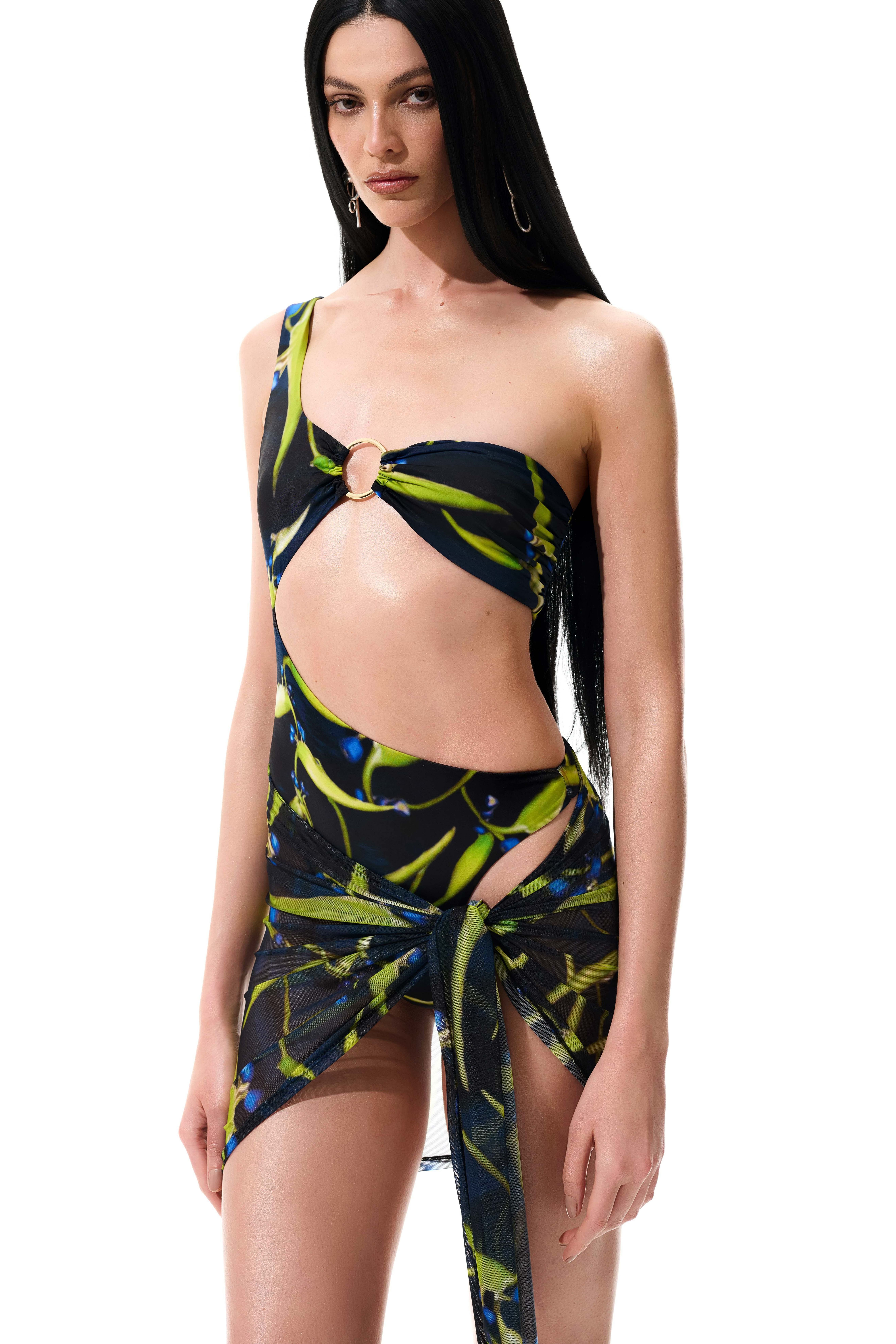 Mini pareô de tule com estampa digital exclusiva.