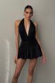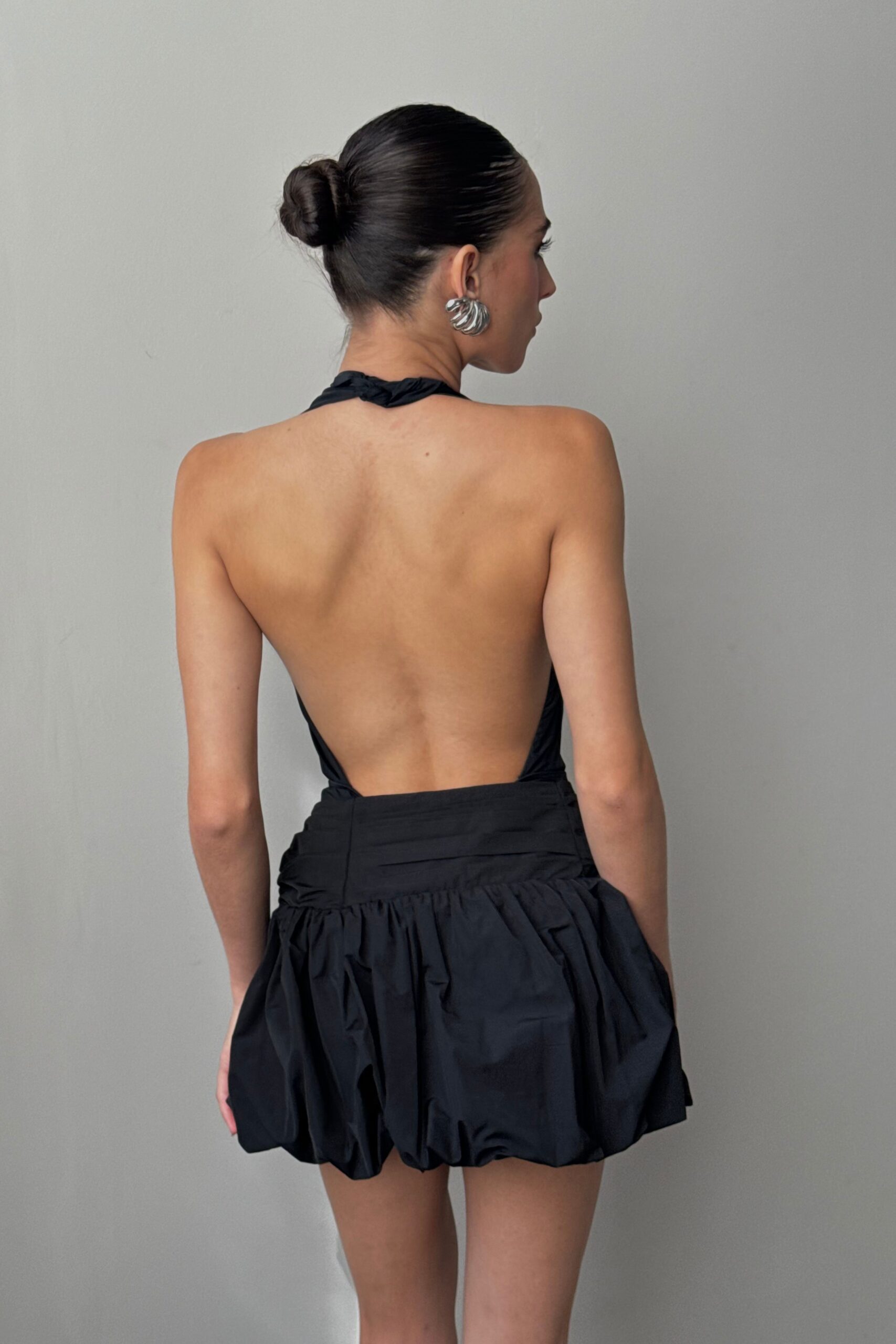Saia de cintura baixa modelo balonê, confeccionada em tecido tecnológico e com cós largo todo drapeado.