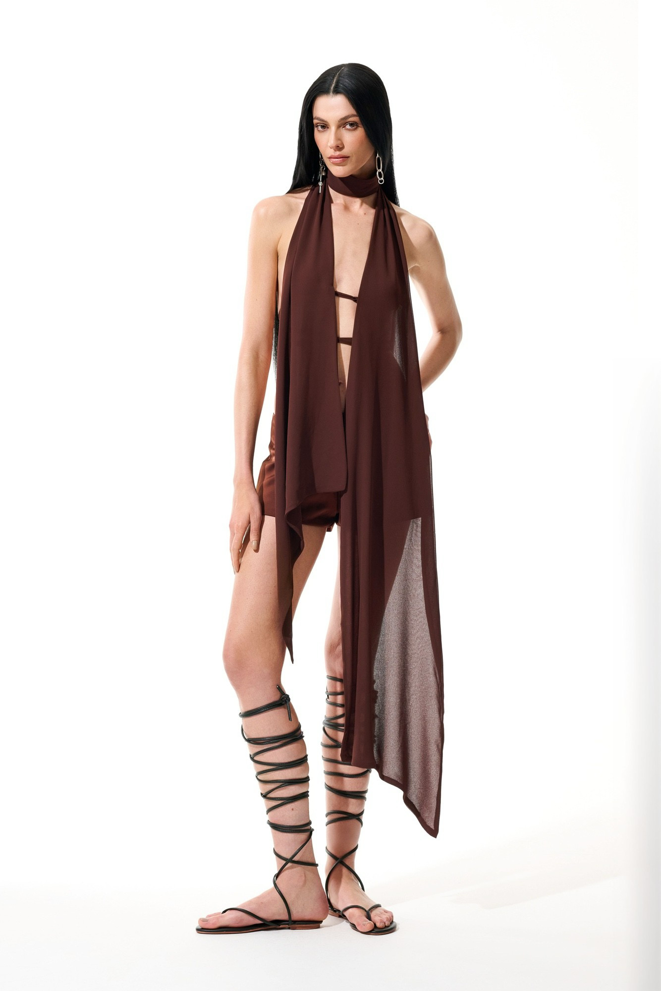 Mini short de crepe acetinado, cintura média e modelagem justa. Possui fechamento frontal com zíper invisível e forro do mesmo tecido.