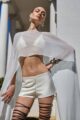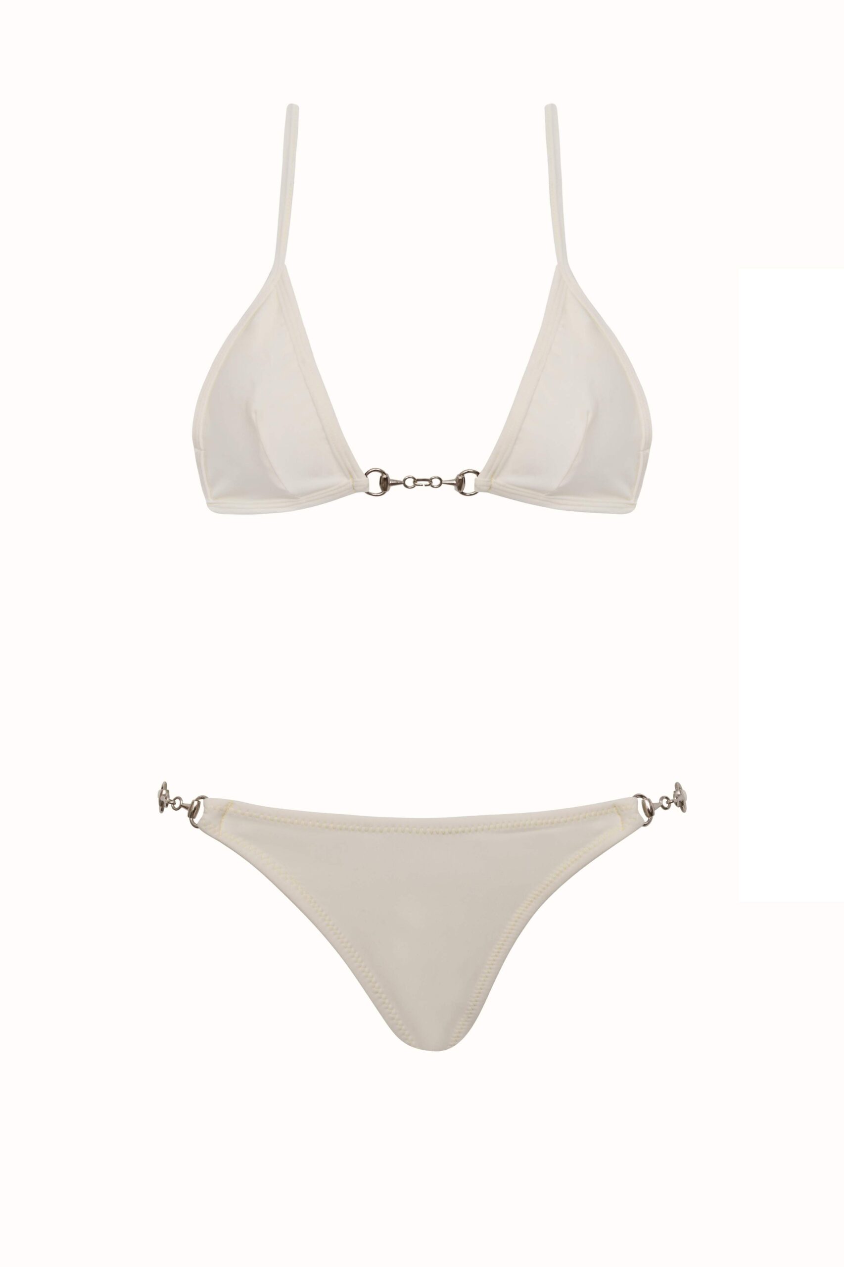 Top de biquini de lycra, todo forrado, em shape triângulo, com amarração. Possui aviamento chain de metal exclusivo.