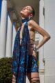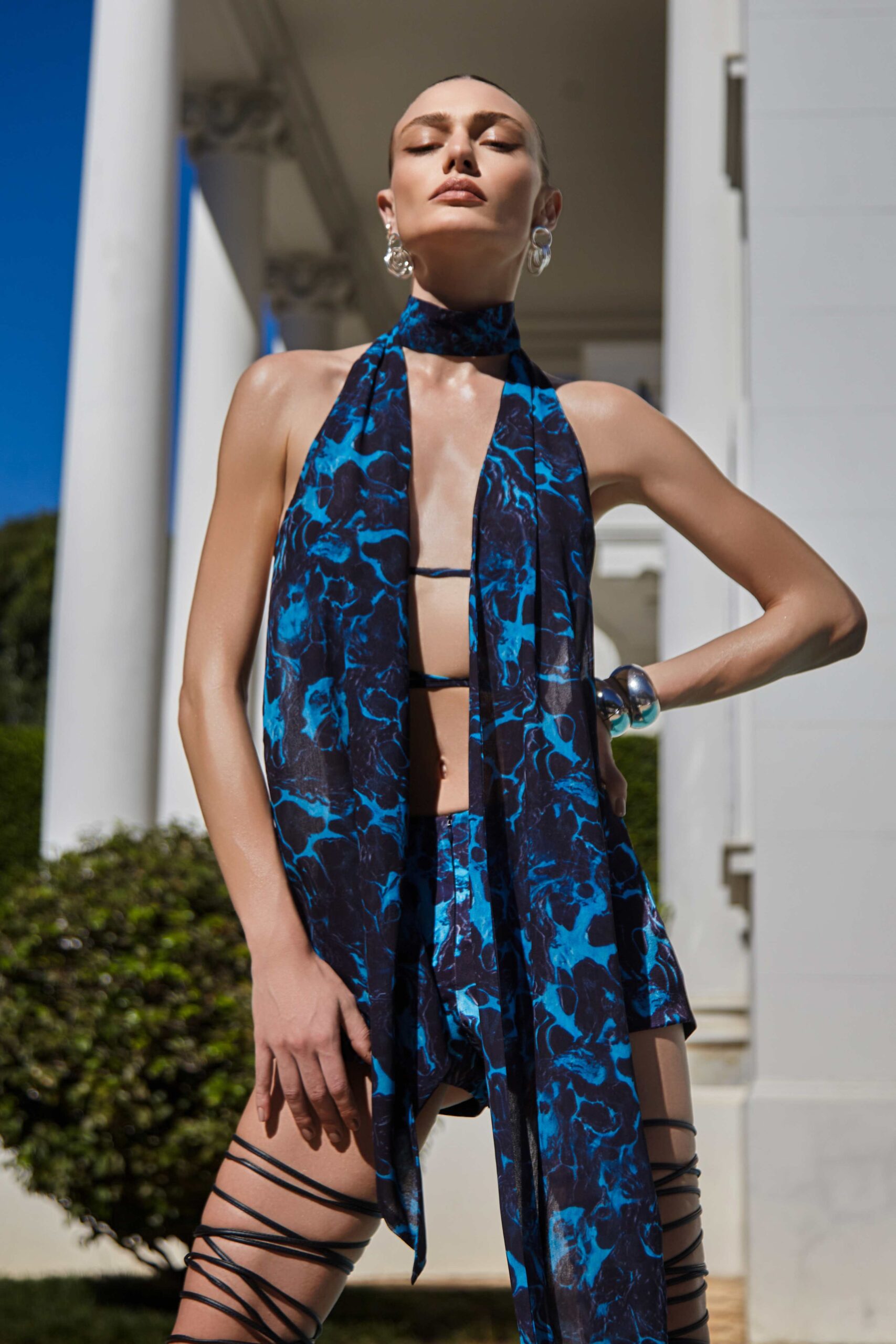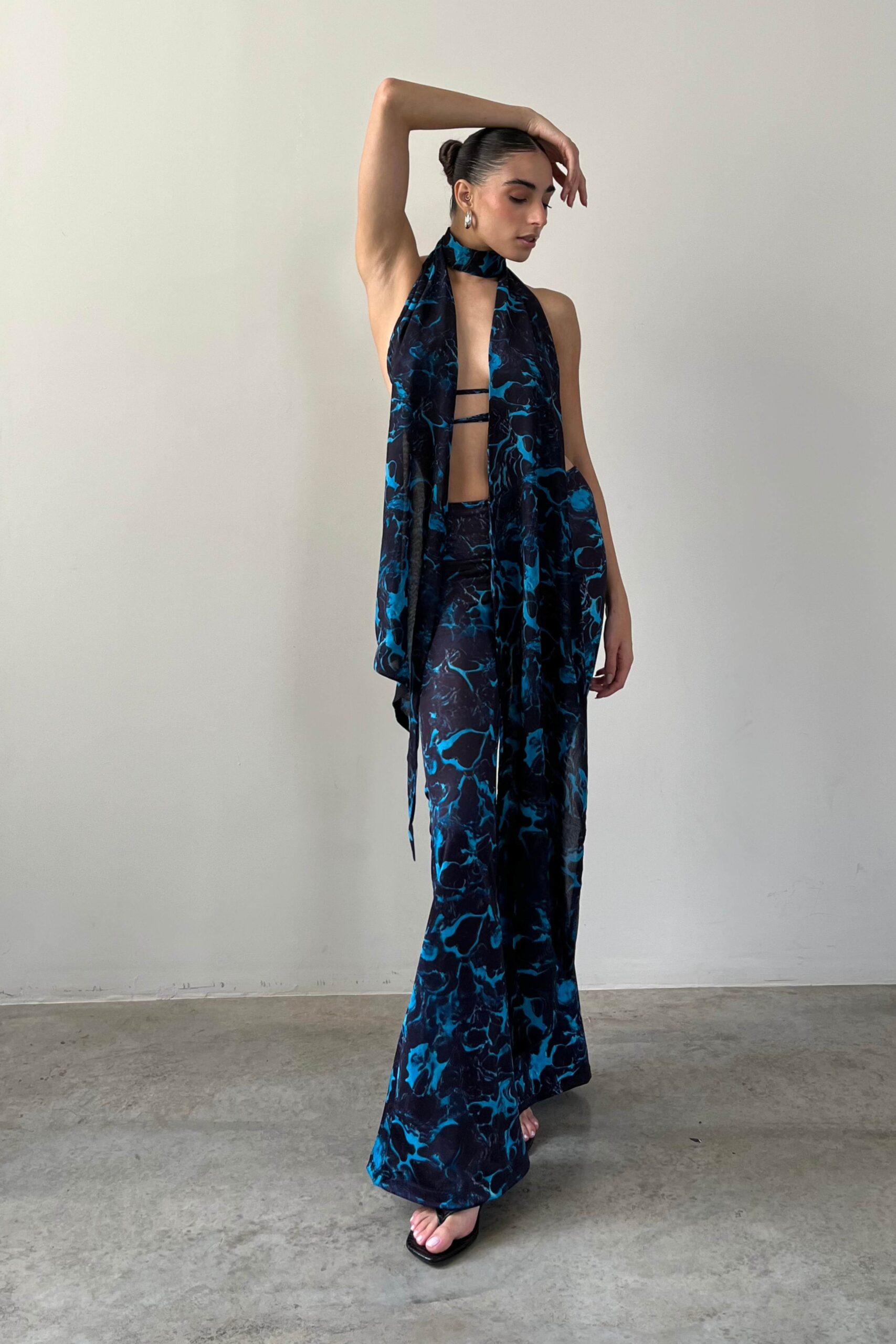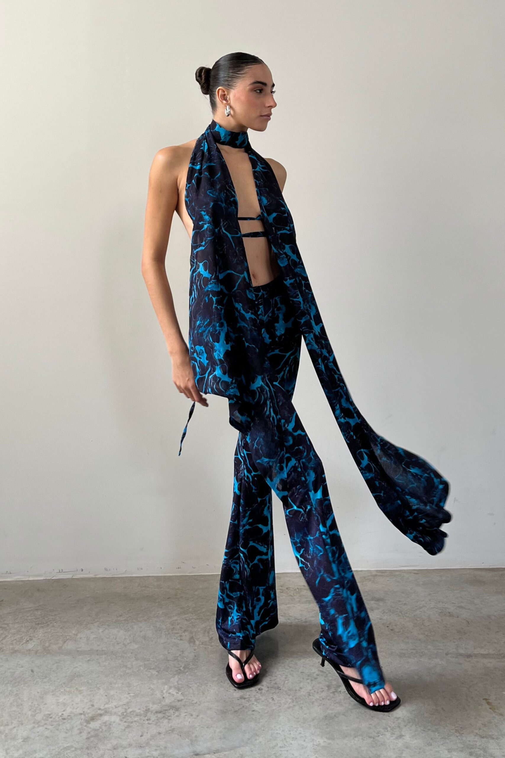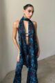 Top de musseline todo duplo com estampa digital exclusiva, frente única, com assimetria entre os lados. Fecho de botoes forrados no pescoco.