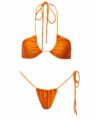 Top cruzado com cordinhas super finas, possui fecho atrás. Feito em lycra beach gloss com um leve brilho. Pode ser amarrado de diversas formas.