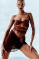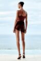 Top de biquini tomara-que-caia todo duplo na malha fluty UV com nós.