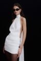 Vestido de cetim curto com modelagem frente única é a escolha perfeita pra quem busca um vestido impactante e moderno pra ocasiões especiais. Confeccionado em cetim, possui saia com drapeados que valorizam a silhueta, além de faixas extra-longas que amarram no pescoço e deixam as costas nuas.