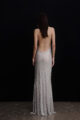 Vestido longo de cristais confeccionado em tule nude, com aplicação de cristais termo-colantes que criam um efeito luminoso e sofisticado, A modelagem sereia valoriza as curvas e o decote frente única traz sensualidade e elegância na medida certa.