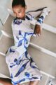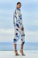 Vestido de tule com estampa digital exclusiva, tamanho midi e manga drapeada.