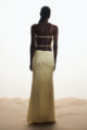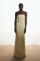 Vestido tomara que caia de cetim com decote arredondado e modelagem sereia. Decote costas com duas tiras, com fecho de metal. Possui zíper invisível nas costas.