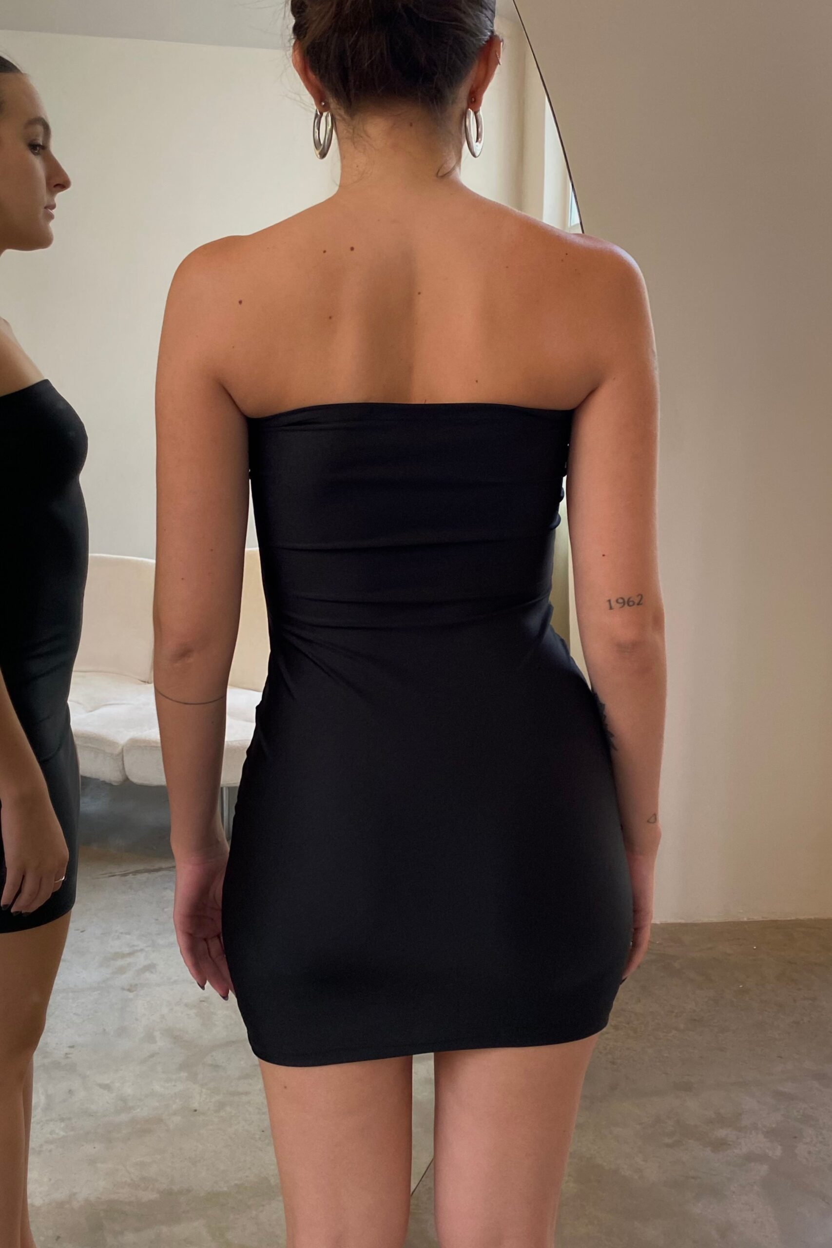 Vestido estilo combinacao tomara-que-caia de lycra, perfeito para ser usado sob nossos tules com transparência.